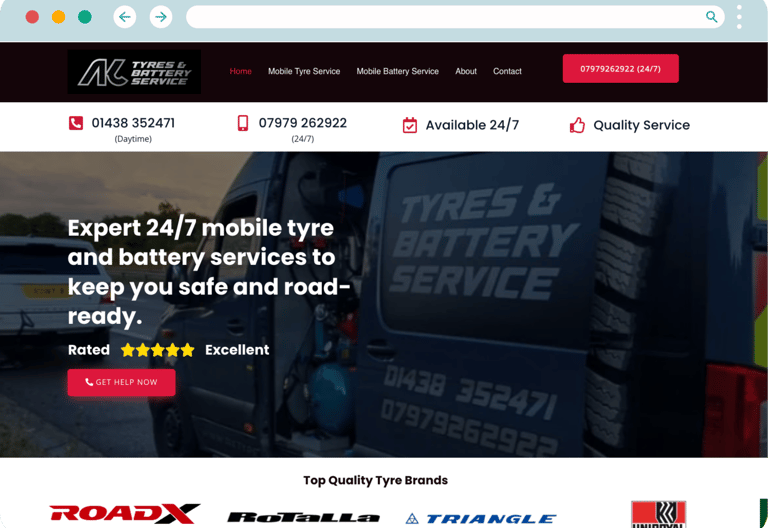 AK Tyres & Battery Services provides 24/7 mobile tyre and battery solutions for cars, vans, campervans, trucks, and more across Hertfordshire, Bedfordshire, Cambridgeshire, and London.